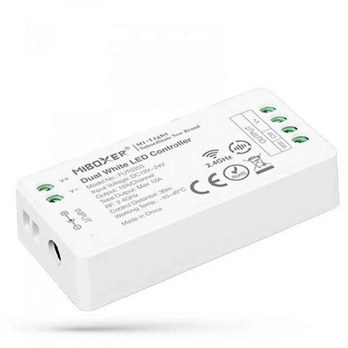A bel- és kültéri EPISTAR© LED szalaghoz tartozó MiLight fényerő szabályozó, dimmer vezérlőegység. A vezérlőegység 30 méter AURORA 60 SMD3528 LED szalag (4,8 W/m), vagy 12 méter CLARO LED szalag (12W/m) üzemeltetésére alkalmas. Ennél nagyobb szakaszokhoz jelerősítő szükséges, melynek bekötését lásd a FIESTA EPISTAR© RGB LED szalag terméklapján. CCT vezérlési funkcióval is rendelkezik: használhatjuk kétszínű LED szalaggal is.