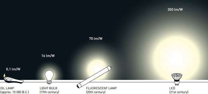 2002-ben, Lumiled által gyártott 5-wattos LED 18–22 lumen fényt bocsátott ki wattonként. összehasonlításként az egyszerű 60-100 wattos izzó 15 lumen fényt generál wattonként.
